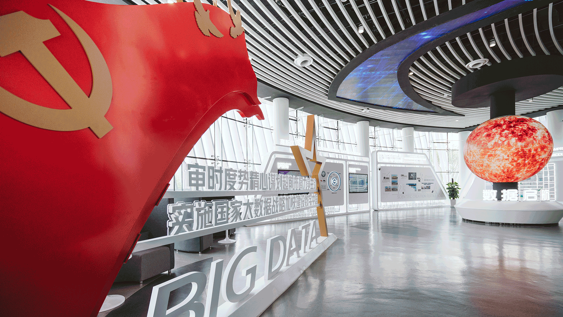 隨著大數據與云計算、5G通信網絡、網絡信息安全產品和服務等新一代信息技術的快速發展,人們的生活方式以及商業的運作模式都悄然改變。借著國家政策扶持的東風,各地大數據產業園應運而生。 金螳螂文化匠心出品重慶永川大數據產業園、鄭州天健湖大數據產業園等主題展廳,通過創新設計,全方位展示大數據項目的運用場景及產業園孵化能力,為引育創新人才、融通創新資本帶來更多可能。 永川大數據產業園 ······● — 重慶市 — ●······ 云谷·永川大數據展示中心位于重慶市永川區大數據產業園C區,1000多平方米的展陳空間內,智慧城市、服務公社、AI、智行天下—雙城智能網聯經濟走廊、云上橫店—全國先進影像制作基地、數字孿生城市—城市數字化管理平臺、西部數據處理基地等區內大數據產業匯聚于此。 大數據產業園將以科技驅動變革為契機,助力永川打造新經濟增長點。 追夢未來 大數據的無限可能 — Infinite Possibilities of Big Data — 展廳以“智慧永川·數據云谷”為主題,整體空間分為云端·智慧永川、沃土·助夢揚帆、征程·銘記芳華、產業·云劃未來、愿景·云端萬象五大板塊,展示產業園以服務外包為基礎,軟件信息、數據處理、數字內容、電子商務融合發展的五大產業集群。 展館采用現代簡約風,將像素和數據流的概念融入空間。展品與傳統形式區分開,利用聲、光、電等多種表現手法,通過互動體驗吸引參觀者的注意力。展項內容靈活可變,能夠隨大數據的發展與變化持續更新。 虛擬主持人--產業園風貌總覽 運用達瓦的動態捕捉和人臉捕捉技術,構建以真人面部和機械軀干合成的虛擬主持人;通過多媒體電子屏幕與模塊芯片上下聯動,詳細介紹永川大數據產業園便捷交通、宜居宜業、人才資源豐富等多元化優勢。 莫比烏斯環--大數據川流不息 以“莫比烏斯環”作為基礎外形,以數字化循環流動的影像構建藝術裝置,進入展示主題”讓大數據永遠川流不息”。墻面光效與莫比烏斯環畫面聯動,使參觀者在如夢似幻的氛圍中感受大數據的魅力。 天健湖智聯網產業園 ······● — 鄭州市 — ●······ 天健湖智聯網產業園位于鄭州市高新技術開發區,以國家數字經濟戰略為指導,構建以智能物聯網為核心,以人工智能、大數據、5G、區塊鏈、云計算為支撐的“1+5+N產業生態體系”,賦能政務、工業、交通、醫療、農業、能源、教育等各個領域,建設高品質生態智慧園區。 展示中心位于產業園北地塊東北角,建筑面積約3000平方米,是一座集展示、體驗于一體的現代科技展館。 賦能中原 點亮數據新未來 — ARTIFICIAL INTELLIGENCE — 天健湖智聯網產業園展示中心分為產業高新、產業宏圖、產業融合、數據宏圖等板塊,配套有路演廳、會議室等共享空間。 SPACE DESIGN 展廳設計之初,金螳螂文化的設計團隊充分解讀建筑設計語言,依據建筑螺旋式形態進行展示布局劃分,解決了異形形態建筑柱子過多、影響參觀流線的難題。將建筑中“力”的匯聚點與展陳內容的“核”——數字沙盤匯聚于一點,形成“數據之眼”。 源于對設計品質與落地效果的不懈追求,由金螳螂文化打造的天健湖智聯網產業園展示中心項目獲得中國建筑裝飾協會“2020年度建筑裝飾行業科學技術獎——設計創新獎”。 LED星云數據水流幕、超大球幕演繹、數字沙盤秀場、飛屏聯動講解系統、全沉浸式未來影院……通過亮點展項的演繹,串聯起流暢的參觀路線,給參觀者直觀的智能體驗,感受產業園“賦能中原 數創未來”的初心。