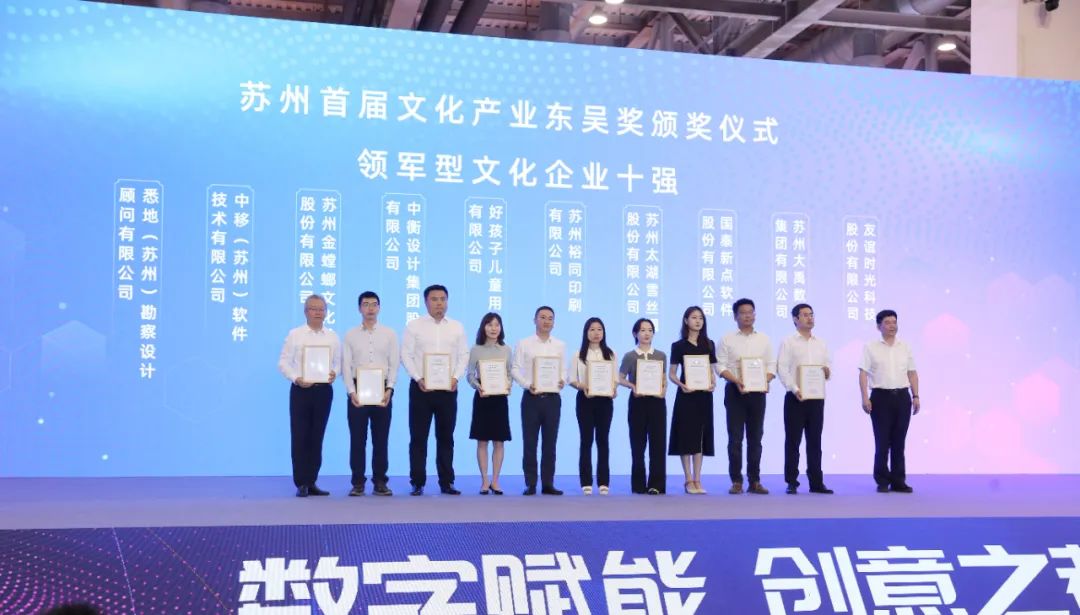 △ 第十二屆蘇州文博會,金螳螂文化獲得蘇州首屆文化產業“東吳獎”領軍型文化企業十強