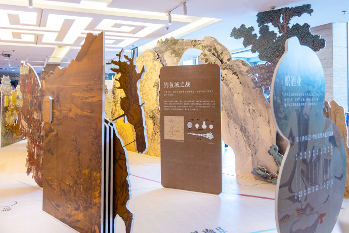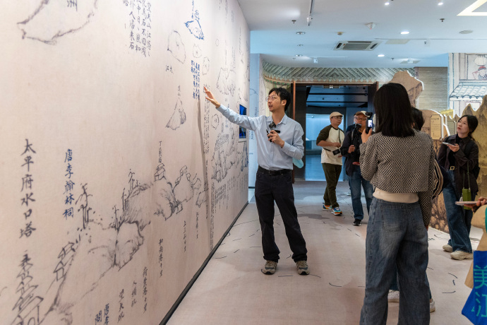 該展覽以《長江大觀全圖》、長江流域線路圖和紙質(zhì)裝置三位一體的展示方式,設(shè)置“起·溯源”“承·煙火”“轉(zhuǎn)·激蕩”“合·共生”四大篇章。